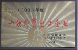 富陽(yáng)市2008年度十強外貿出口企業(yè)